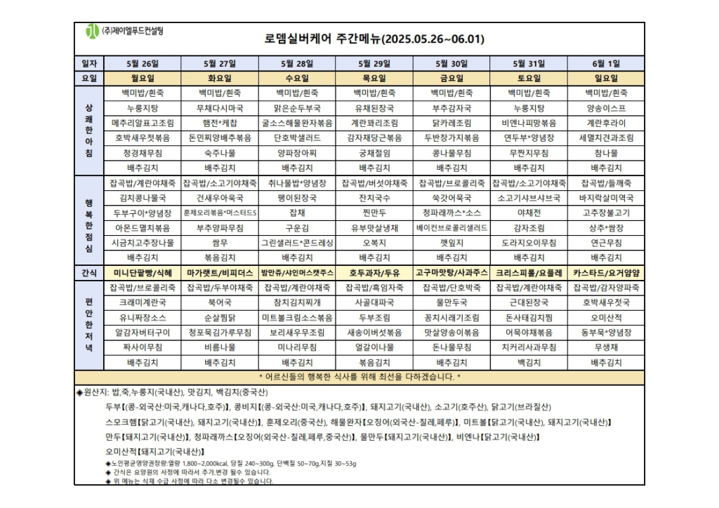 제목2025년 5월 26일~ 6월 1일 주간 식단표2025-05-24 11:25